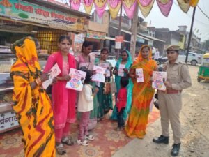 इसी क्रम में महिला थाना पुलिस टीम द्वारा “मिशन शक्ति अभियान फेज 5.0” के तहत थाना अजीतमल क्षेत्रान्तर्गत मोहल्ला आजाद नगर में एक चौपाल का आयोजन किया गया। चौपाल में उपस्थित महिलाओं एवं बालिकाओं को नारी सुरक्षा, नारी सम्मान एवं नारी स्वावलंबन के बारे में विस्तृत जानकारी दी गई। उन्हें यह बताया गया कि किसी भी प्रकार के अपराध या अपराधी की सूचना तत्काल पुलिस या शक्ति मित्र महिला पुलिसकर्मियों को दें।